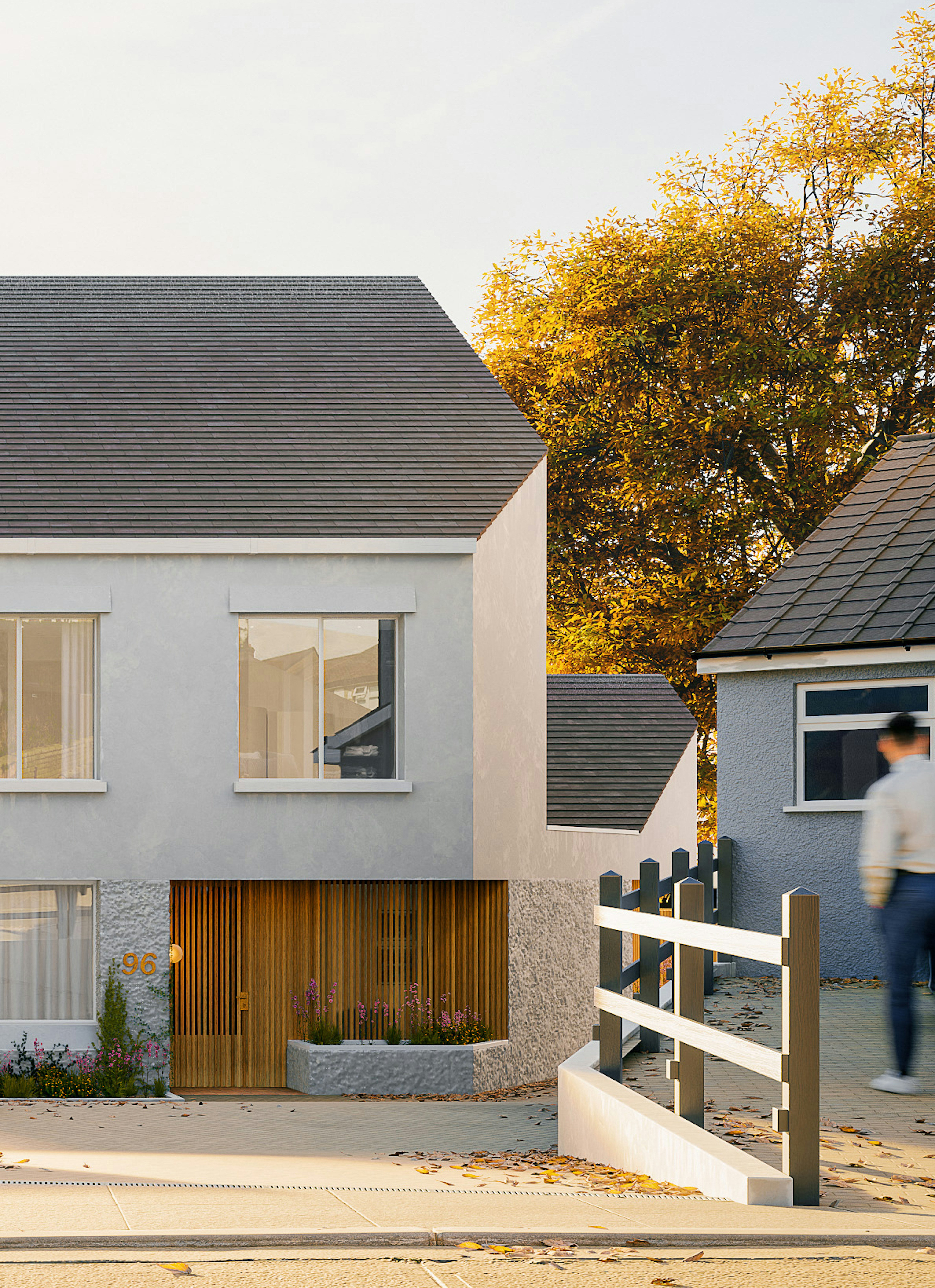 We are delighted to have secured planning permission for a major renovation and extension to an existing home on Kincora Road, Clontarf. The proposal reorganises the site with a clearer approach and a new entrance, improving access and privacy. Internally, rooms are reoriented to track the sun—opening living spaces to morning light and evening sun—and strengthening the connection to the garden. A restrained palette of zinc, iroko hardwood, brick and concrete is chosen to weather with grace, creating textured interactions between materials that are quietly animated by light.