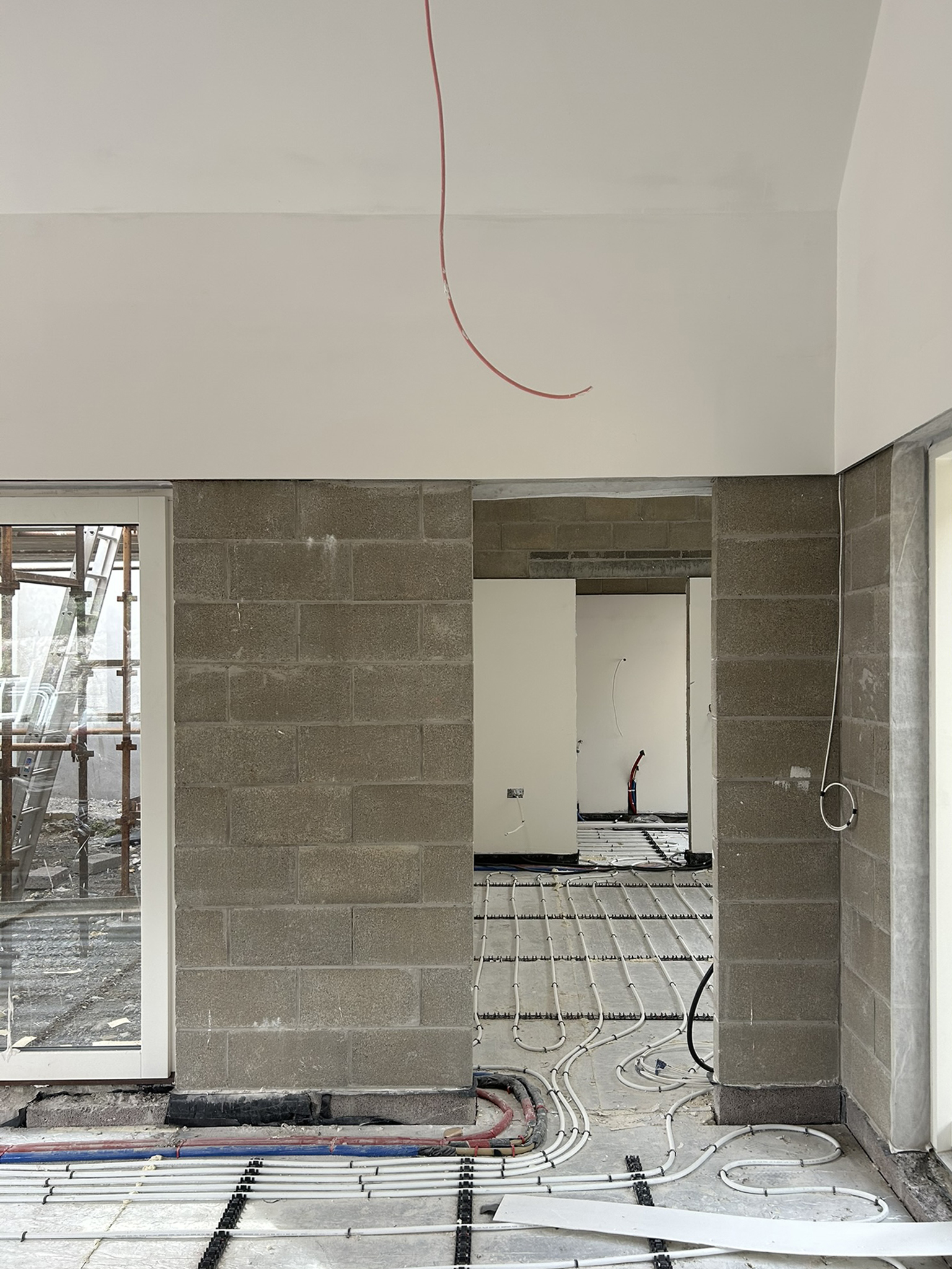 Site progress on our extension to a workers Cottage in Cork City. Polished concrete floors, final carpentry and painting left to go. On the project we explored playful ways of exposing and concealing the construction of the home, reducing costs and expressing the honesty of the construction. A unique purpose built home for a wonderful young family. The project is due to complete in September.
