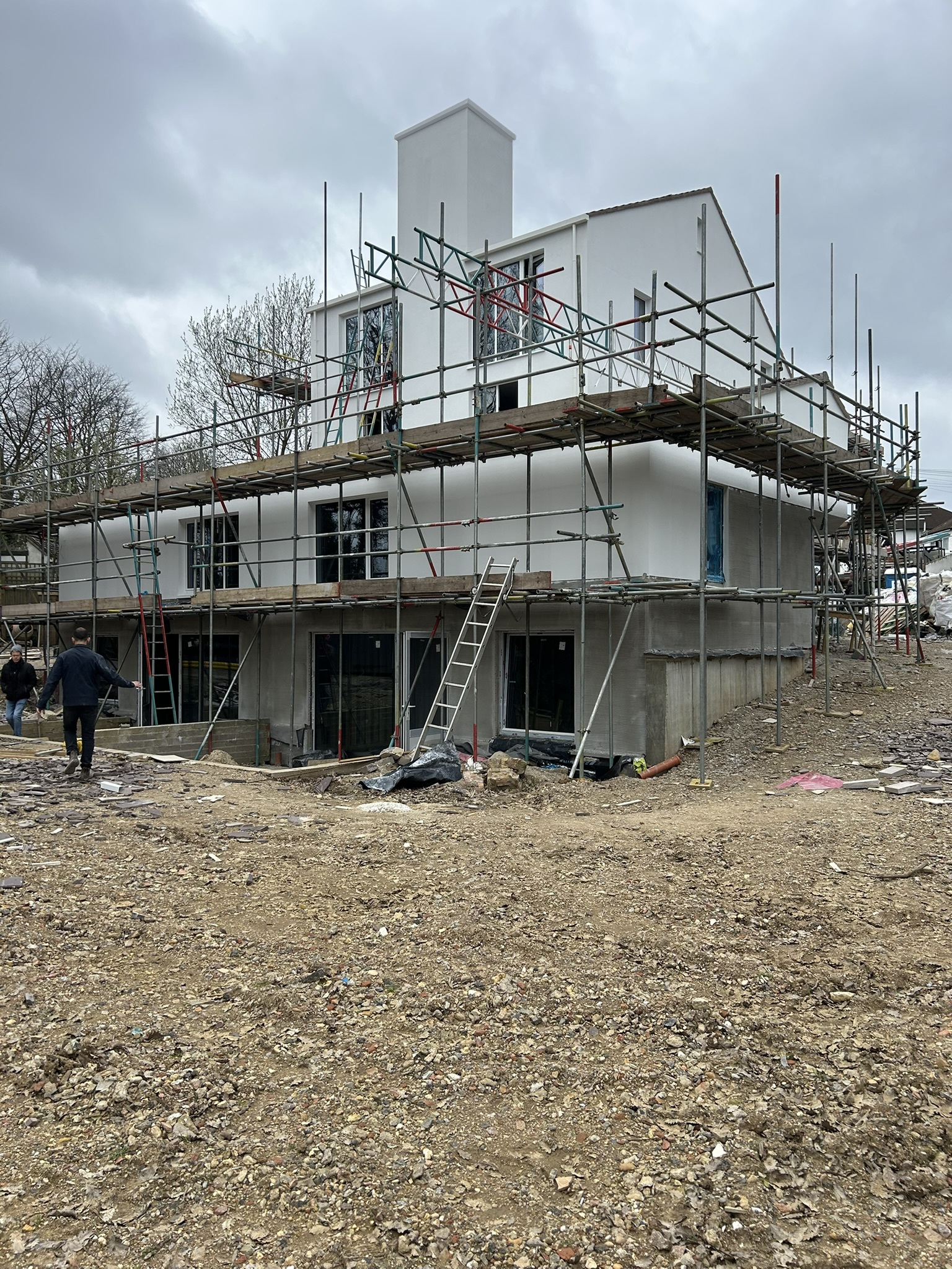 Our 1st London Housing project is approaching the finish line in North London. Scaffolding is now coming down to reveal the bold geometries in the design. Due for completion early June.