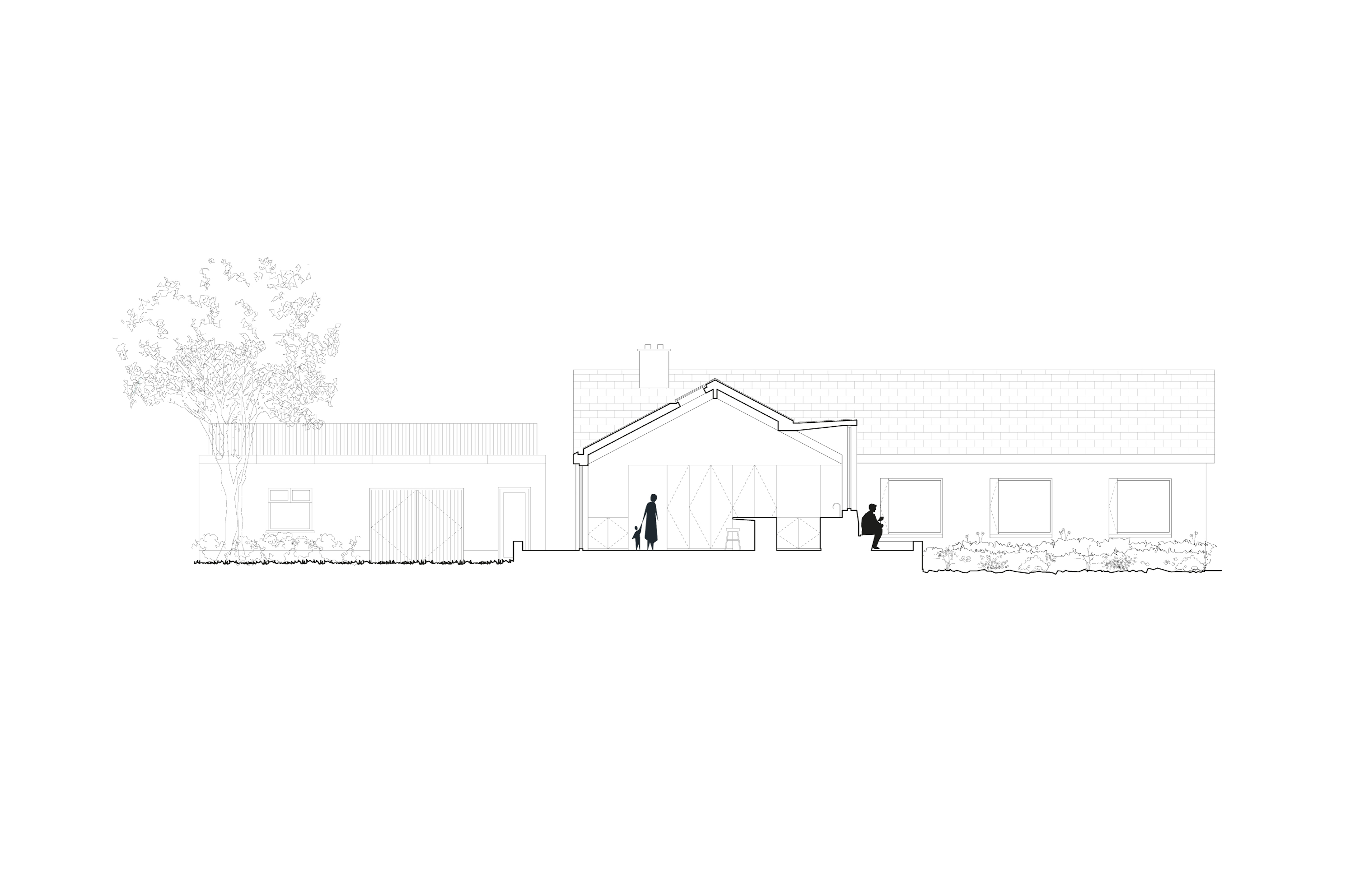The house explores the studio's preoccupation with advancing construction technology, and utilises a new hyper efficient & low carbon construction system. External walls are to be constructed from porous Porotherm blocks that will sit on an insulated raft foundation. The new build, and refurbishment of the existing bungalow target an A+ energy rating when complete.